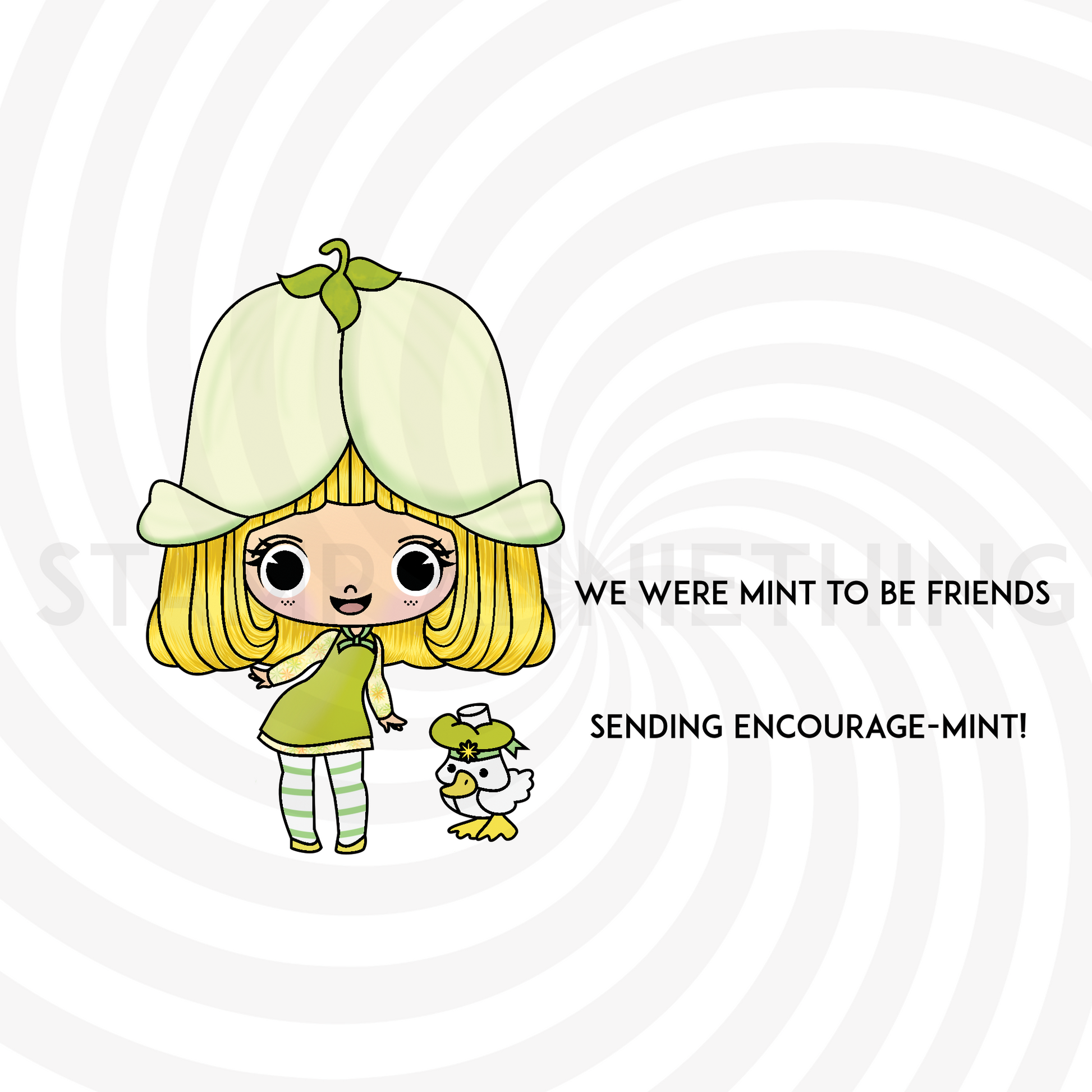 Add double the cuteness to your cards with this Mint Tulip and Marsh Mallard digital stamp. These adorable characters will join your Strawberry Shortcake gang and add a fun touch to your projects. Don't miss out on this delightful duo!